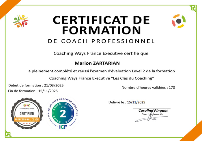 Dans la continuité de mon parcours de coach professionnelle, je démarre une nouvelle étape importante : l’obtention d’une certification RNCP, programmée d’avril à juin 2026.