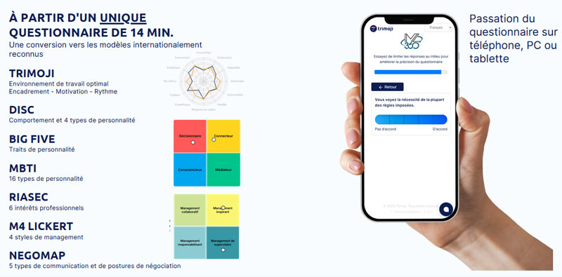 Je soumets le ou les profils à un questionnaire TRIMOJI qui révèle la personnalité du candidat.